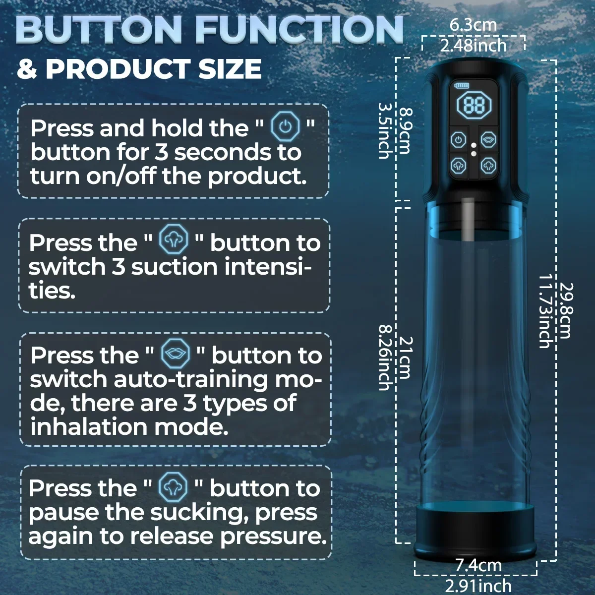 Masturbadores masculinos con bomba de pene eléctrica impermeable IPX7, extensor de entrenamiento de agrandamiento, eyaculación retardada, juguete sexual para hombres